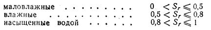 Коэффициент водонасыщенности в ряде случаев характеризует качество грунтов. По водонасыщенности (степени влажности) различают грунты: