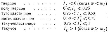Глины и суглинки могут иметь в зависимости от значения показателя текучести следующие состояния: