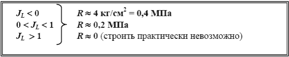 Практическое применение От JL зависит расчетное сопротивление грунта нагрузкам R (см. табл. СНиП 2.02.01–83*)