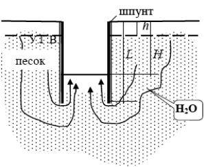 где Vf — скорость фильтрации, или объем воды, проходящей через единицу площади поперечного сечения грунта в единицу времени; kf — коэффициент фильтрации, равный скорости фильтрации при гидравлическом градиенте i = 1; i — гидравлический градиент, равный потере напора Н2 - Н1 = Н отнесенной к пути фильтрации L: