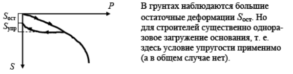 – грунт в большинстве случаев не является упругим материалом (остаточные деформации грунта значительно больше упругих);