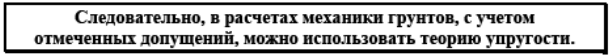 Поскольку структурная прочность грунта под подошвой часто незначительна, зависимость между средним давлением штампа и его осадкой (при небольшом развитии пластических деформаций), а, следовательно, между напряжениями и деформациями, принято считать линейной.