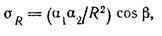 Подставив в уравнение (б) значение σR, определенное по выражению (а), и решив его, найдем произведение коэффициентов α1·α2. После подстановки значения α1·α2 в выражение (а) получим: