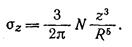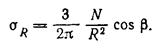 Пренебрегая величиной RdR, малой по сравнению с R2, и учитывая линейную зависимость между напряжениями и деформациями, найдем выражение для напряжений сжатия, действующих на площадки, перпендикулярные направлению радиуса R, без учета силы тяжести грунта: