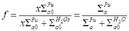 239Pu делится нейтронами любых энергий, поэтому поглощение резонансных нейтронов приводит к делению и, если считать отношение сечения деления к сечению поглощения a независящим от энергии нейтронов, то формула трех сомножителей редуцируется к формуле: