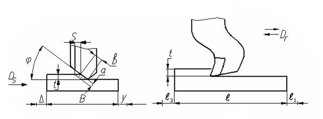 Главным движением D r при строгании является возвратно-поступательное движение резца при работе на поперечно-строгальном станке или столе с заготовкой – в случае продольно-строгальных станков; движением подачи Ds – перемещение заготовки в направлении перпендикулярном главному движению. Процесс резания проходит во время рабочего хода резца, при обратном ходе он отсутствует.