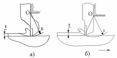 На строгальных станках в начальный момент резания резцы испытывают ударные нагрузки, а при дальнейшем резании возможны вибрации, что связано с консольным креплением резца и изменением глубины резания. В связи с консольным закреплением строгальных резцов вершина резца в процессе резания (в результате отжима) будет перемещаться по дуге окружности.