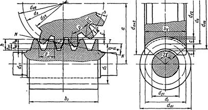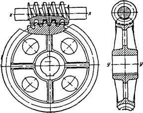 В отличие от косозубого колеса обод червячного колеса имеет вогнутую форму, способствующую некоторому облеганию червяка и соответственно увеличению длины контактной линии. Резьба червяка может быть однозаходной или многозаходной (2, 4).