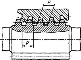 В червячных передачах стандартный угол профиля принят равным 20°: у архимедовых червяков в осевом сечении, у конволютных - в нормальном сечении, у эвольвентных - в нормальном сечении косозубой рейки, сцепляющейся с червяком. Расстояние между одноименными точками соответствующих боковых сторон двух смежных витков червяка, измеренное параллельно оси, называют расчетным шагом и обозначают Р. Отношение P/π называют модулем. Модуль (m) - стандартный параметр: для червяка он является осевым, для червячного колеса -торцовым.