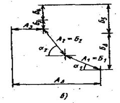 б) плоская размерная цепь имеющая звенья, расположенными под разными углами к выбранному направлению