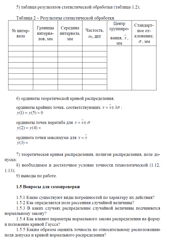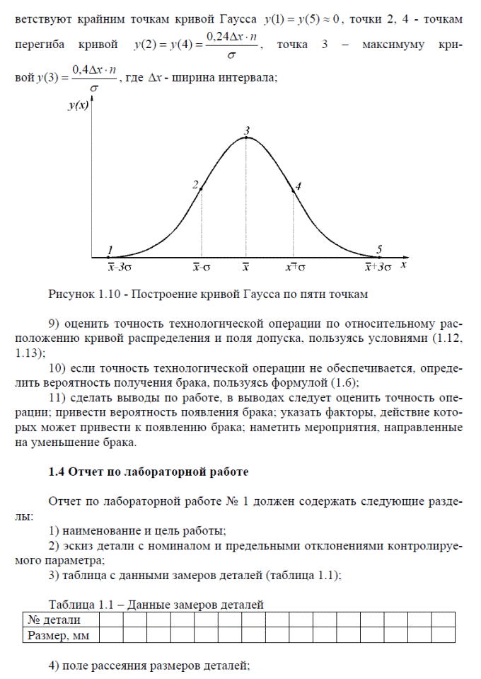| 1. 2. 3. 4. | Вводная часть. 1. Цели и задачи лабораторных исследований. 2. Инструктаж по технике безопасности. 3. Распределение обязанностей. Основная часть. Уяснение цели и задач погрешностей детали. Составить таблицу замеров детали. Построение кривой Гаусса. Выводы по работе Заключительная часть. Подведение итогов работы Указать время защиты лабораторной работы. |