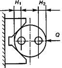 Задача 4.3. На торцовой поверхности валов, устанавливаемых в призму, сверлят два отверстия (рис. 4.8). Проверить расчетом, при каком расположении кондукторных втулок относительно призмы разность размеров Н1 и H2 минимальна. Диаметр вала ø80+0'15 мм, угол призмы α = 90°. Рис. 4.8. Схема установки кондукторных втулок относительно призмы