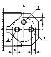 Рис. 4.9. Схема установки кондукторных втулок при сверлении отверстия в торце вала (к задаче 4.4): 1, 2, 3 — варианты расположения втулок