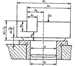 Задача 4.7. На вертикально-фрезерном станке концевой фрезой обрабатывают ступенчатую поверхность крышек, устанавливаемых в центрирующую втулку (рис. 4.12). Вывести расчетные зависимости для определения погрешности базирования для размеров А\,А2иА3 при заданной точности размеров заготовки (1, (1{ и центрирующей втулки О.