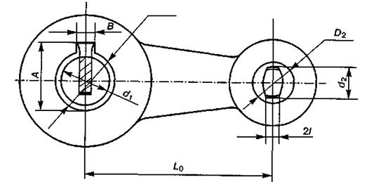 Задача 4.12. На горизонтально-протяжном станке обрабатывают шпоночный паз (рис. 4. 17). Требуется вывести расчетные зависимости и определить погрешность базирования при выполнении размеров А и В, а также найти отклонение от перпендикулярности оси шпоночного паза относительно оси отверстий D1 и D2, если известно, что диаметры базовых отверстий выполнены с допусками TD1 = ТD2 = 0,025 мм, а установочных пальцев — Td1 = Td2 = 0,011 мм; минимальный зазор в сопряжении базовых отверстий рычага с установочными пальцами приспособления S1min = S2min= 0,009 мм; межосевое расстояние Lo = 200+0,3 мм.