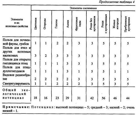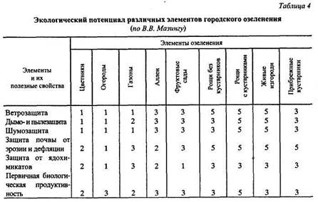 Поскольку элементы природного каркаса города – это не что иное, как озелененные территории, а их биопродуктивность различна, важно хотя бы ориентировочно знать "экологический потенциал" различных элементов каркаса (табл. 4).