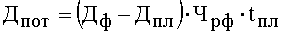 Если фактически одним рабочим отработанно меньше дней и часов, чем предусматривалось планом, то можно определить сверхплановые потери рабочего времени: целодневные (Дпот) и внутрисменные (tпот):