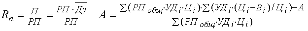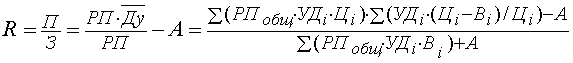 Для анализа рентабельности издержек в целом по предприятию используем следующую факторную модель: