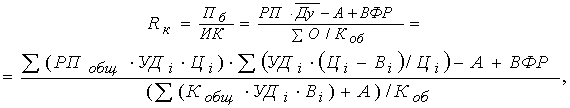 Последовательно заменяя плановый (базисный) уровень каждого факторного показателя на фактический и сравнивая результат расчета до и после замены каждого фактора, можно определить изменение уровня рентабельности за счет объема реализованной продукции РПобщ, ее структуры (УДi), цены (Ц), удельных переменных расходов (В) и суммы постоянных затрат (А).