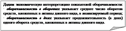 Оборачиваемость оценивают, сопоставляя показатели средних остатков оборотных активов и их оборотов за анализируемый период. Оборотами при оценке и анализе оборачиваемости являются: