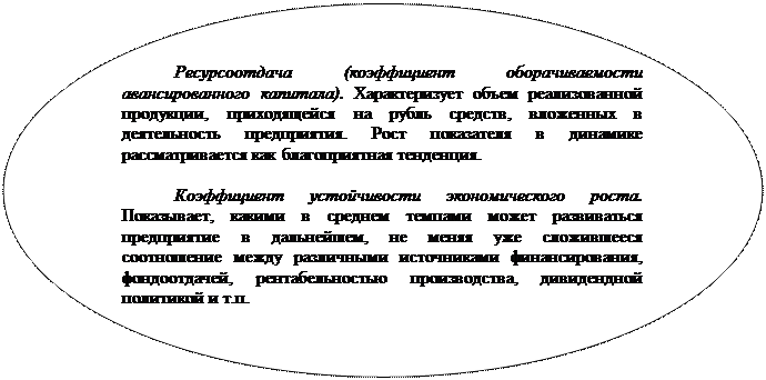 К обобщающим показателям оценки эффективности использования ресурсов предприятия и динамичности его развития относятся показатель ресурсоотдачи и коэффициент устойчивости экономического роста.