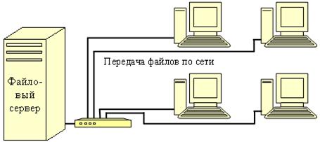 Схема работы с БД в локальной сети с выделенным файловым сервером