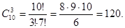 Решение. В отличие от предыдущего примера, здесь не важен порядок финалистов, следовательно, ищем число сочетаний из 10 по 3: