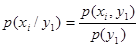 Рассмотрим дискретную двумерную случайную величину и найдем закон распределения составляющей Х при условии, что Y примет определенное значение (например, Y = у 1). Для этого воспользуемся формулой Байеса, считая гипотезами события Х = х 1, Х = х 2,…, Х = хп, а событием А – событие Y = у 1. При такой постановке задачи нам требуется найти условные вероятности гипотез при условии, что А произошло. Следовательно,