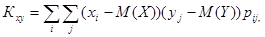 Kxy = μ1,1 = M ((X – M (X))(Y – M (Y))).(9.8)