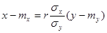 и преобразуем ее, учитывая соот-ношения M (X – mx) = M (Y – my) = 0, M ((X – mx)(Y – my)) = = Kxy = rσxσy: