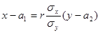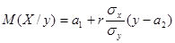 Обе функции регрессии линейны, поэтому корреляция между Х и Y линейна, что и требовалось доказать. При этом уравнения прямых регрессии имеют вид