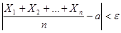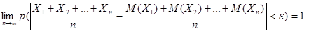 Если Х 1, Х 2, …, Хп – попарно независимые случайные величины с равномерно ограничен-ными дисперсиями, имеющие одинаковое математическое ожидание, равное а, то для любого сколь угодно малого ε > 0 вероятность неравенства