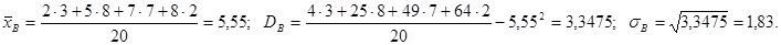Пример 1. Найдем числовые характеристики выборки, заданной статистическим рядом