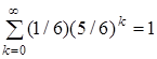 | рi | 1/6 | (5/6)·(1/6) | (5/6)2·(1/6) | … | (5/6) k ·(1/6) | … |