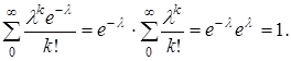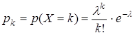 Распределение Пуассона. Дискретная случайная величина Х называется распределенной по закону Пуассона, если ее возможные значения - числа 0, 1, 2, …, k, …, а соответствующие вероятности вычисляются по формуле Пуассона: