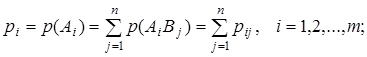 соответственно. Тогда события Аi = { Х = xi }, где i = 1, 2, … и события Вj = { Y = уj }, где j = 1, 2, … образуют разбиение множества Ω.