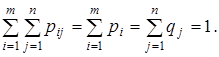 Если случайные величины Х, Y принимают конечное число значений: i = 1, 2, …m; j = 1, 2, …n, то вероятности рij можно записать в таблице с m строками и n столбцами (табл. 8.1). Заметим, что
