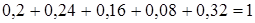 | pi | 0,2 | 0,24 | 0,16 | 0,08 | 0,32 |