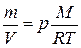 Плотность воздуха ρ выразим из уравнения состояния идеального газа pV =