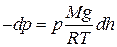 где ρ(h) – плотность воздуха на высоте h. Вес этого слоя воздуха dP =ρ gSdh. Следовательно, уменьшение (убыль) давления с высотой – это давление этого слоя: