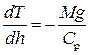 Подставляя сюда численные значения: g =9,8, М =0,029, С р=(7/2) R =29, получаем искомое изменение температуры с высотой: