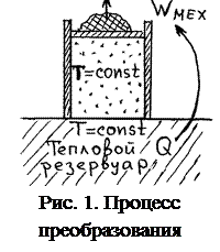 энергию. А так как Т =const, то внутренняя энергия газа не меняется (Δ U =0) и, следовательно, Q = A, т.е. тепловая энергия резервуара полностью переходит в механическую энергию поршня с грузом (рис. 1).