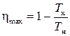 Максимально же возможный КПД, т.е. КПД обратимой машины, работающей между теми же температурами,