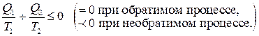 Из (7) следует, что для двух резервуаров с температурами Т 1 и Т 2, с которыми система обменивается теплотами Q 1 и Q 2, справедливо неравенство: