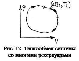 Однако в круговом процессе система может обмениваться теплотами Δ Qi не обязательно с двумя, а со многими резервуарами с разными температурами Ti (рис. 12). При этом справедлива следующая теорема (без доказательства):