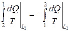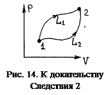 Доказательство. Пусть L 1 и L 2 – два различных обратимых (квазистатических) процесса, переводящих систему из состояния 1 в 2 (рис. 14). Рассмотрим циклический процесс 1→ L 1→2→ L 2→1. Для этого обратимого цикла справедливо равенство (11), которое можно представить как сумму процессов: