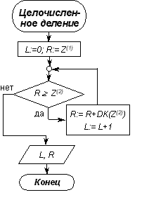 Таким образом, операции div и mod, как, впрочем, и операция умножения, реализуются программно, т.е. сводятся к последовательности небольшого числа более простых действий.