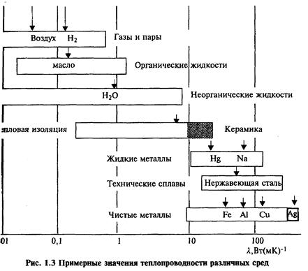 q = - lgrad T, где l — теплопроводность Вт/м×К