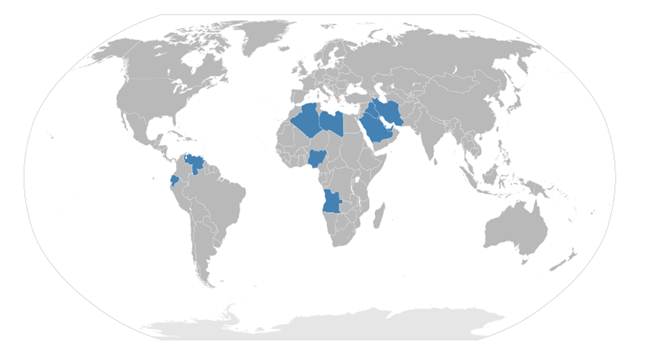 В настоящее время в ОПЕК входят 11 стран: Саудовская Аравия, Иран, Ирак, Кувейт, Катар, ОАЭ, Ливия, Алжир, Нигерия, Индонезия, Венесуэла.