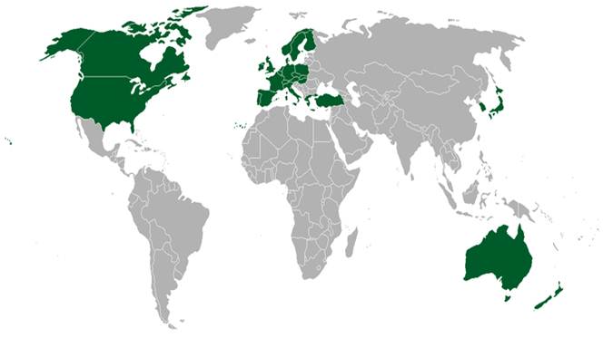 МЭА в настоящее время объединяет 24 страны, в том числе: Австралия, Австрия, Бельгия, Канада, Дания, Финляндия, Франция, Германия, Греция, Великобритания, Венгрия, Ирландия, Япония, Люксембург, Нидерланды, Новая Зеландия, Норвегия, Португалия, Испания, Швеция, Швейцария, Турция, США.